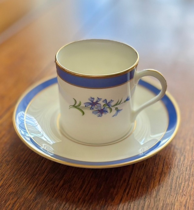 ティファニーアンドコー デミタスカップ&ソーサー | Tiffany & Co. Demitasse Cup & Saucer ブルー ピンク イエローの可愛らしい小花が描かれたデミタスカップ。 カップの縁やソーサーリムの部分はブルーと豪華な金彩がされています。エレガントで美しいカップです。眺めているだけで癒されます。 シリーズ名:Tiffany Floral 日本製。 サイズ:カップ口径56mm、把手78mm、高さ56mm、ソーサー直径120mm、高さ18mm コンディション:キズや欠けもなく艶のある使用感のない良品です。 This demitasse cup features adorable small flowers in blue, pink, and yellow. The rim of the cup and saucer are adorned with a luxurious blue and gold accents. This elegant and beautiful cup is soothing to look at. Series Name: Tiffany Floral. Made in Japan. Size: Cup diameter 56mm, handle 78mm, height 56mm, saucer diameter 120mm, height 18mm Condition: In excellent condition with no scratches or chips, and a glossy finish.