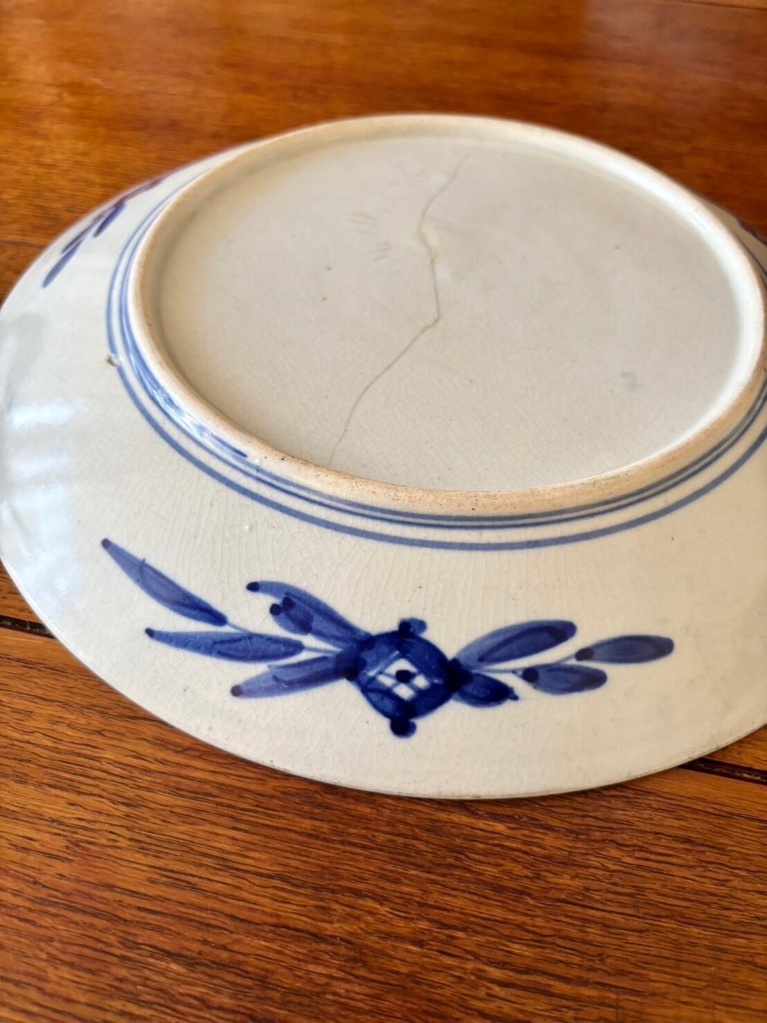 藍や赤 緑と多彩な絵の具で風景や花、蝶が描かれています。少々色が薄くなっていますが、金彩もされています。表 裏に大きくニュウが入っている為、大変お求めやすくなっております。良い状態のものであれば数万円のお品です。気に入って下さった方に可愛がって頂けたら嬉しいです。