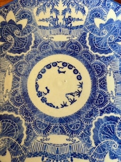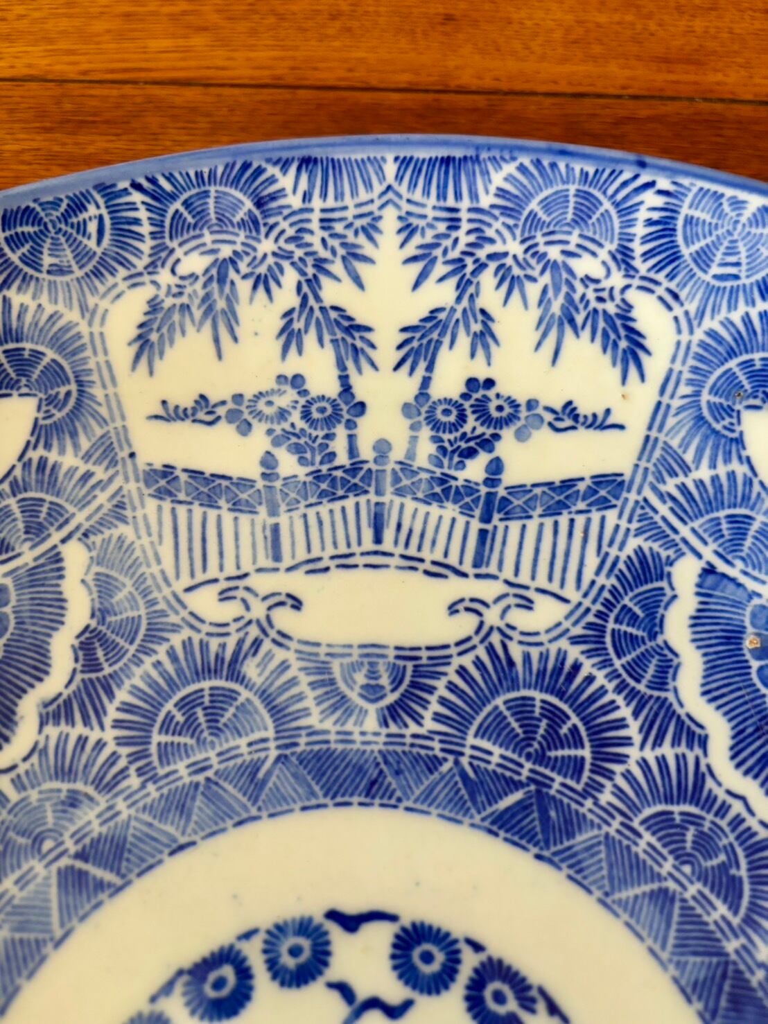風景植物 竹や菊などが大きな器に細かに印判されています。