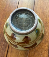 特徴的な高台と口縁部のかたちが印象的です。緑と茶色のデイゴ唐草模様も素朴な味わいです。やちむんらしく、厚みがあって手に馴染んで使いやすいうつわです。こんなそばマカイで頂くソーキそばは、きっと絶品でしょう。