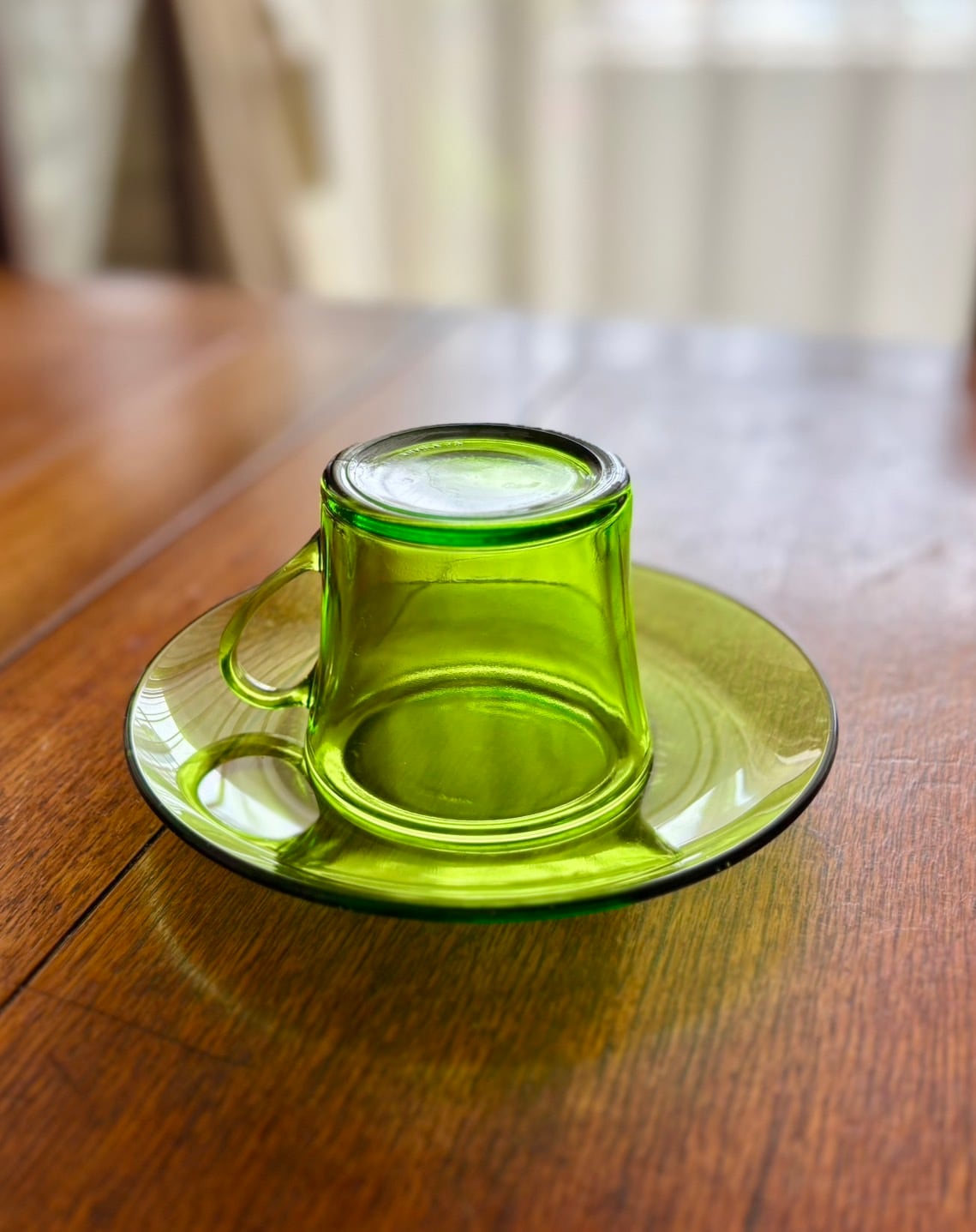 フランス デュラレックス カップ&ソーサー グリーン ヴィンテージ|French Duralex Cup & Saucer Green Vintage
