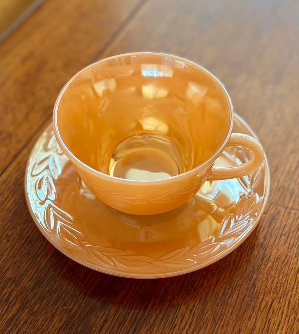ファイヤーキング ピーチラスター カップ&ソーサー ヴィンテージ|Fire-King Peach Lustre Cup & Saucer Vintage