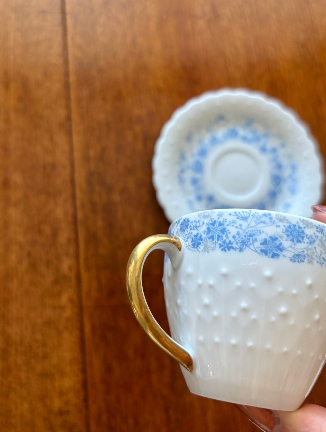 ジョルジュボワイエ リモージュ リヴィエラ カップ&ソーサー ブルー小花 ボーンチャイナ ヴィンテージ|Georges Boyer Limoges Riviera Cup and Saucer with Blue Floral Design, Bone China Vintage | うつわ 雑貨 ヴィンテージのお店 on the Buffet/オンザバフェ