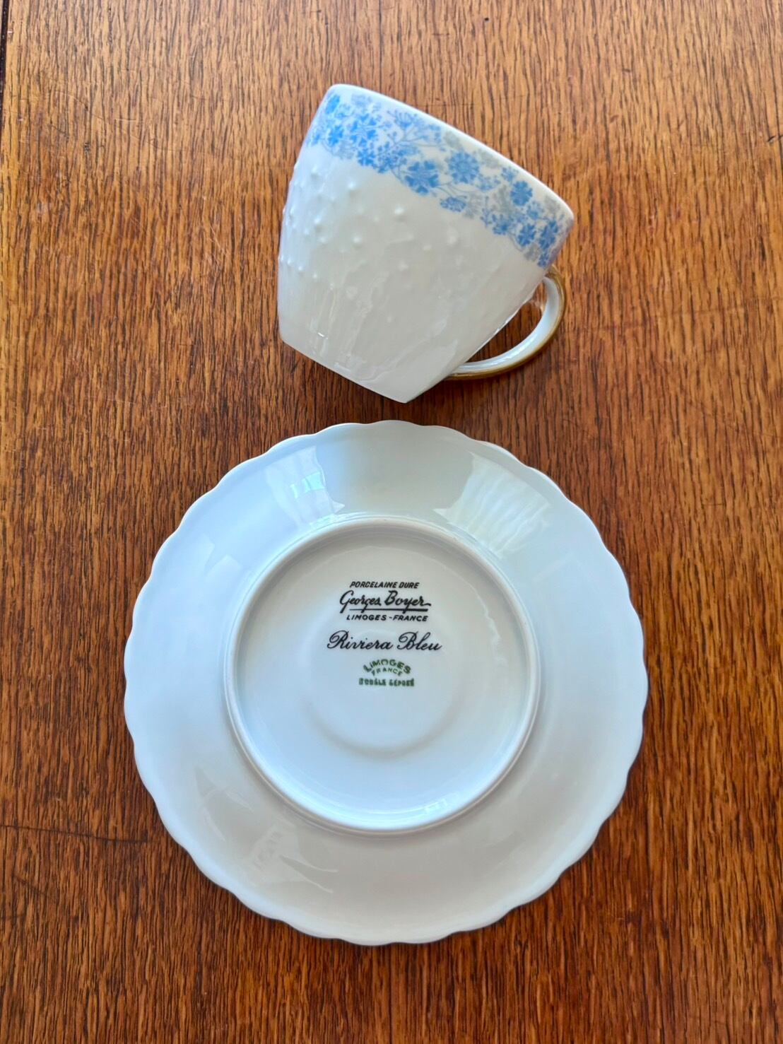 ジョルジュボワイエ リモージュ リヴィエラ カップ&ソーサー ブルー小花 ボーンチャイナ ヴィンテージ|Georges Boyer Limoges Riviera Cup and Saucer with Blue Floral Design, Bone China Vintage