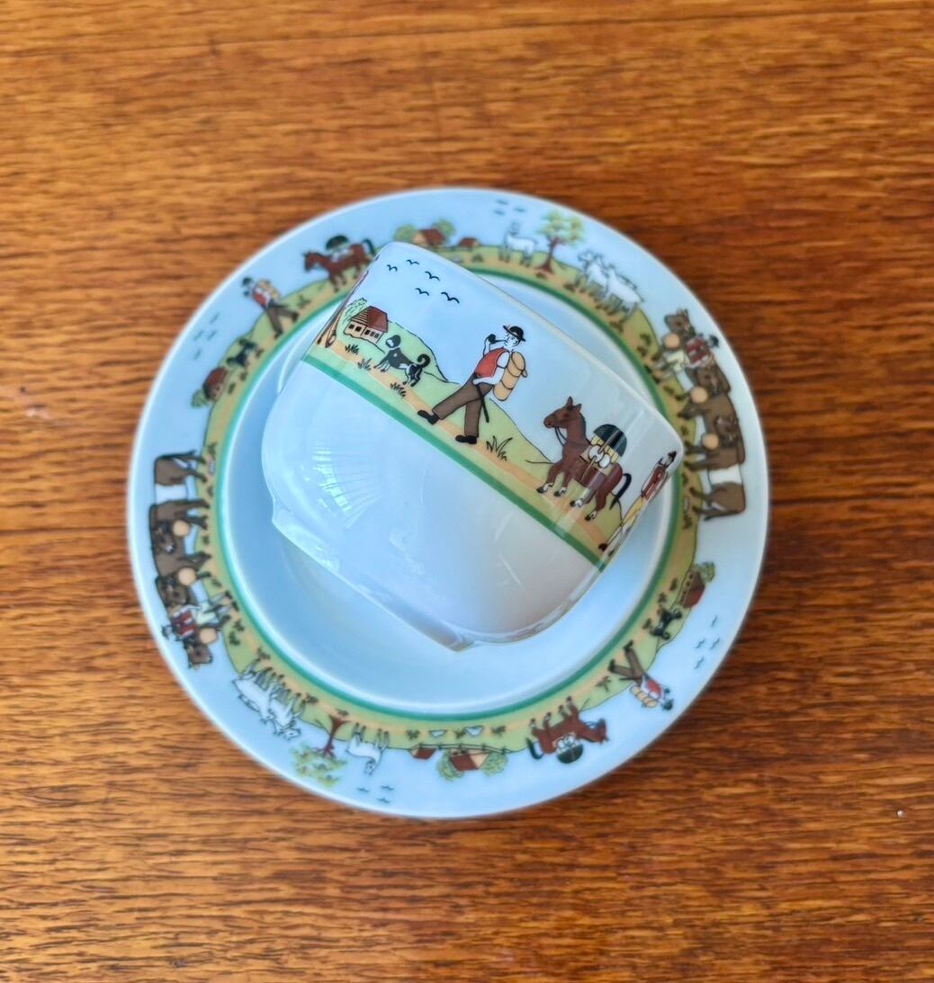 スイス ランゲンタール デミタスカップ&ソーサー 人物 牛 風景 ヴィンテージ|Swiss Langenthal Demitasse Cup & Saucer with People, Cows, and Landscape, Vintage