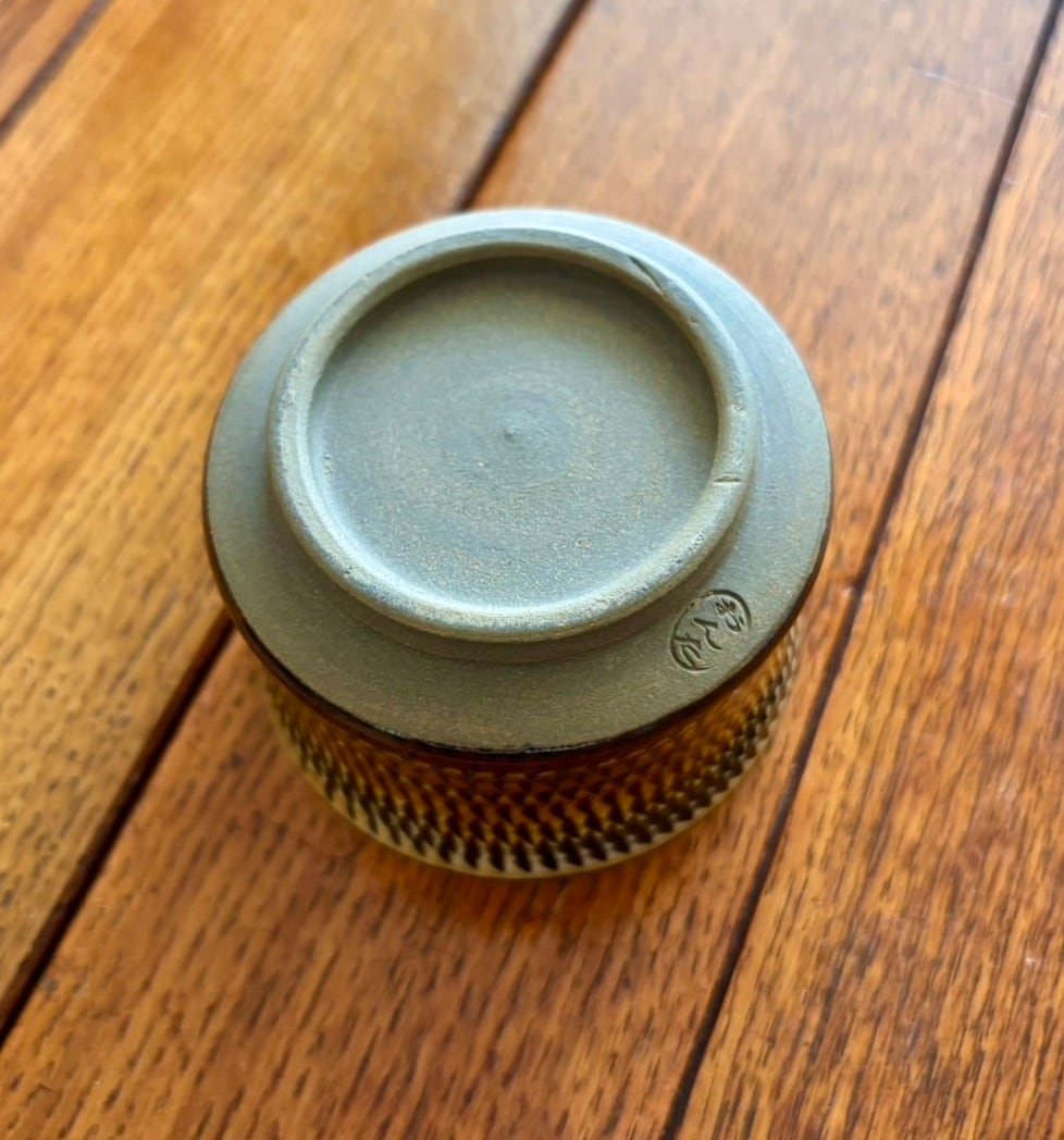 Its distinctive form, slightly concave in the center, is striking. It exudes a modern design. The beautiful amber glaze color, unique to Onta ware, and the natural flow of the glaze create a warm expression.