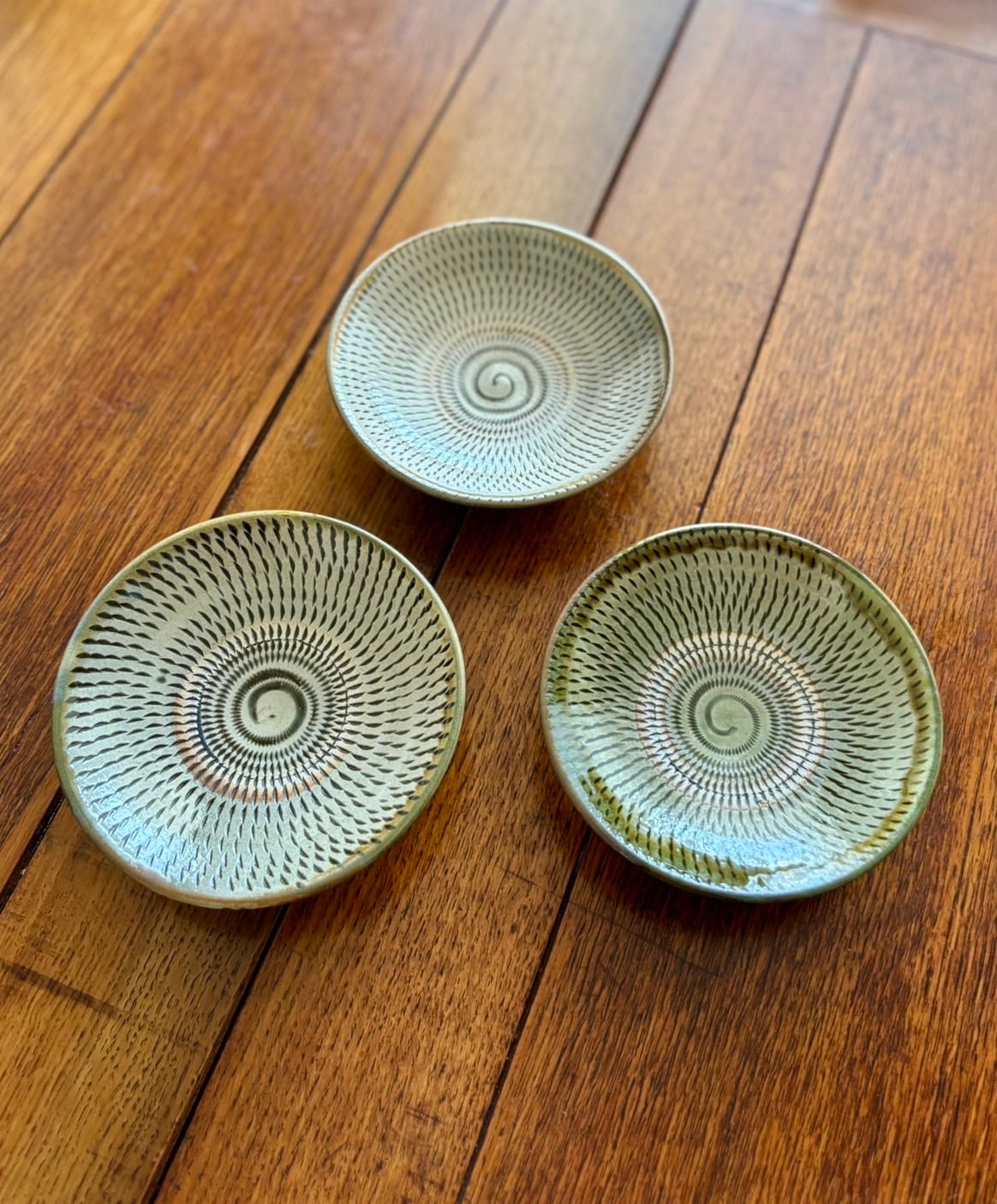 小鹿田焼 大分 飛び鉋 小皿 白 黄 民藝 手仕事 a|Onta ware, Oita, Tobikannna, Small Plate, White, Yellow, Folk Art, Handmade a