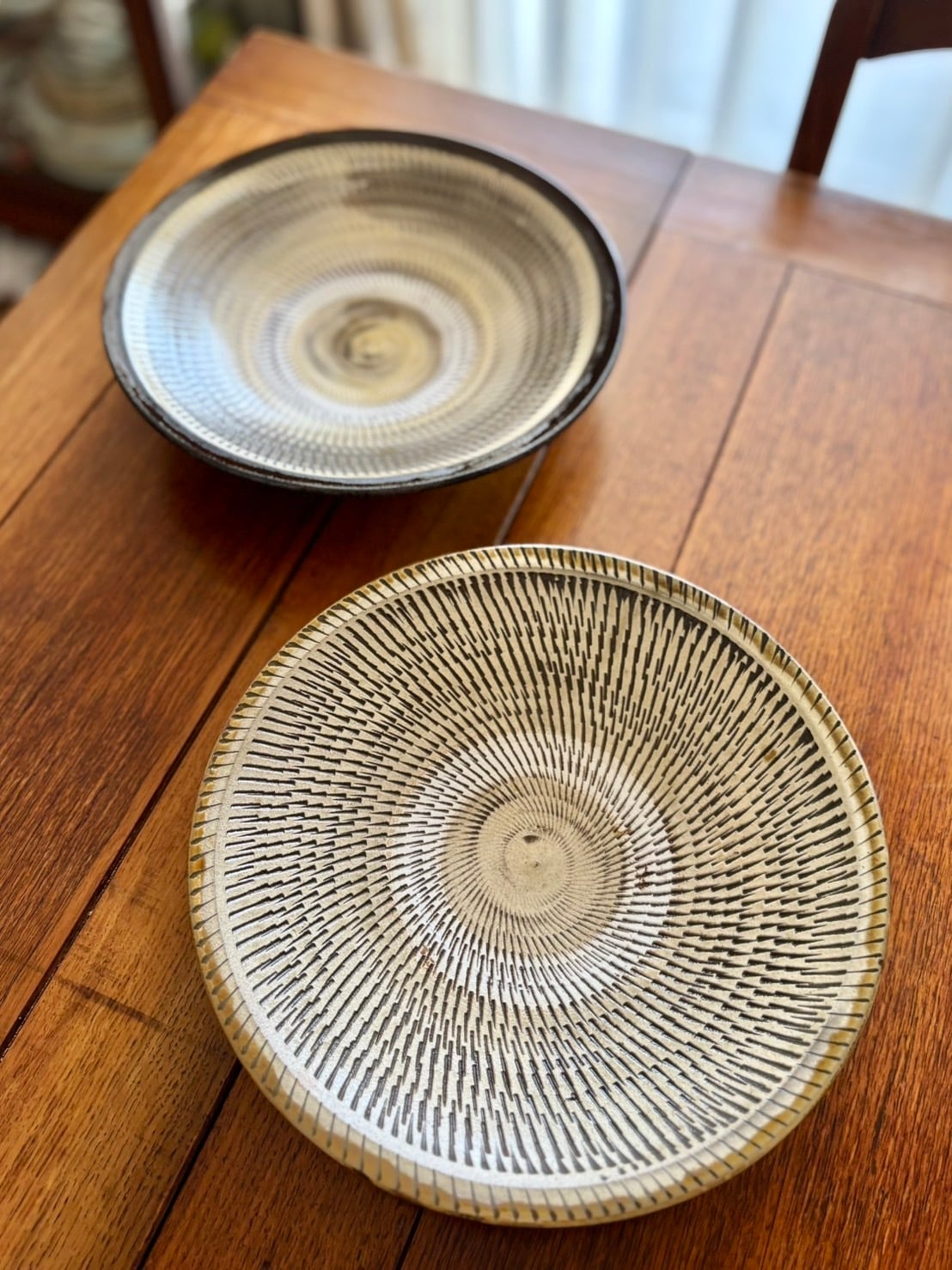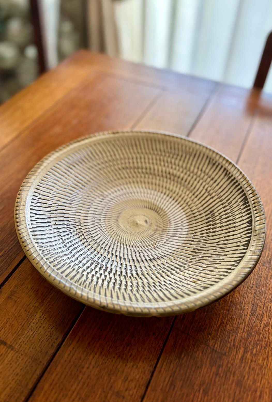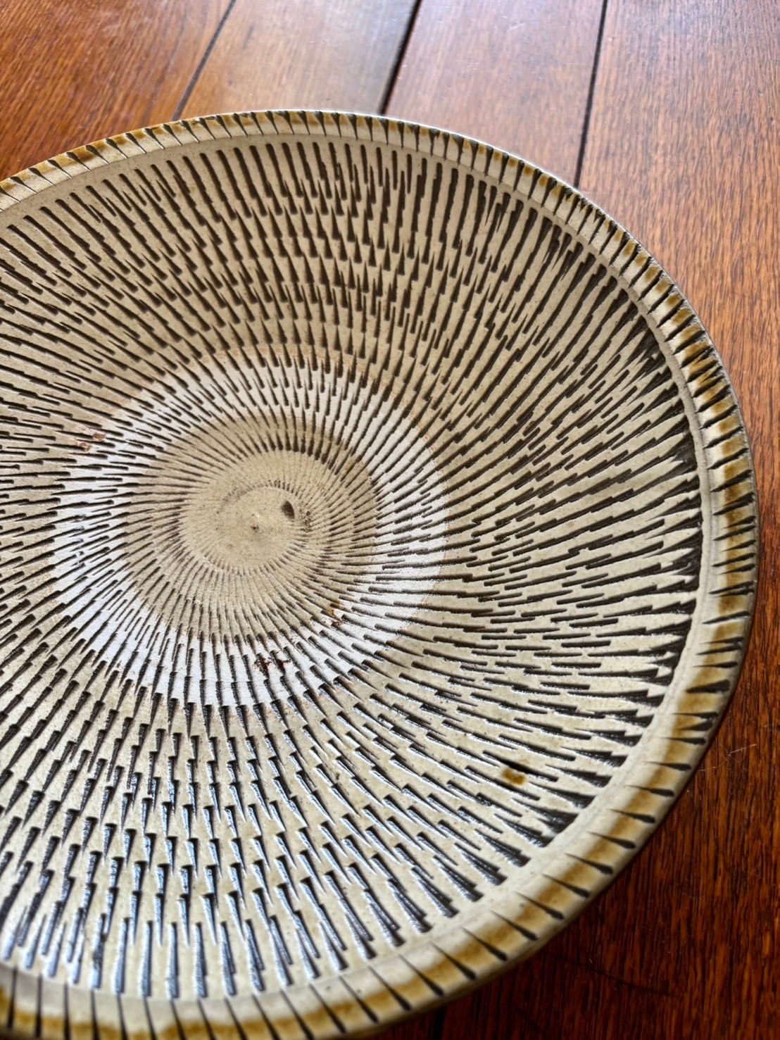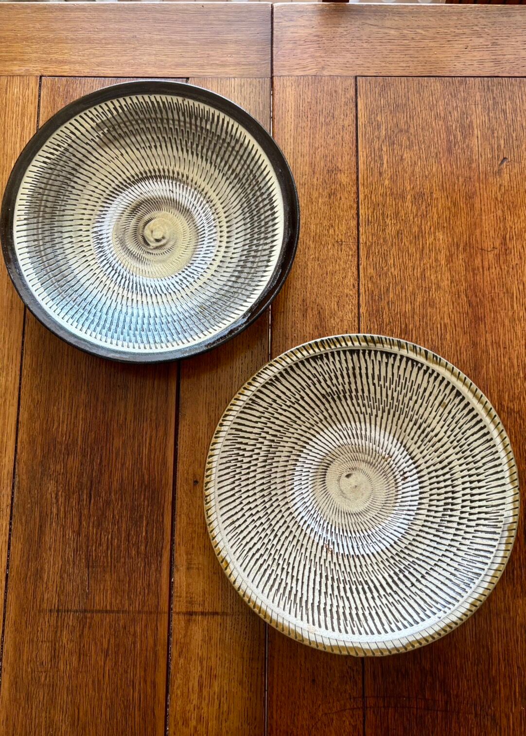 飛び鉋模様が美しい小鹿田焼の手作りディナー皿です。