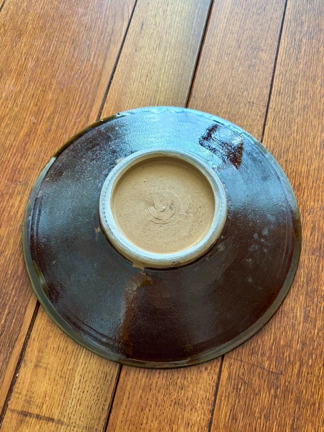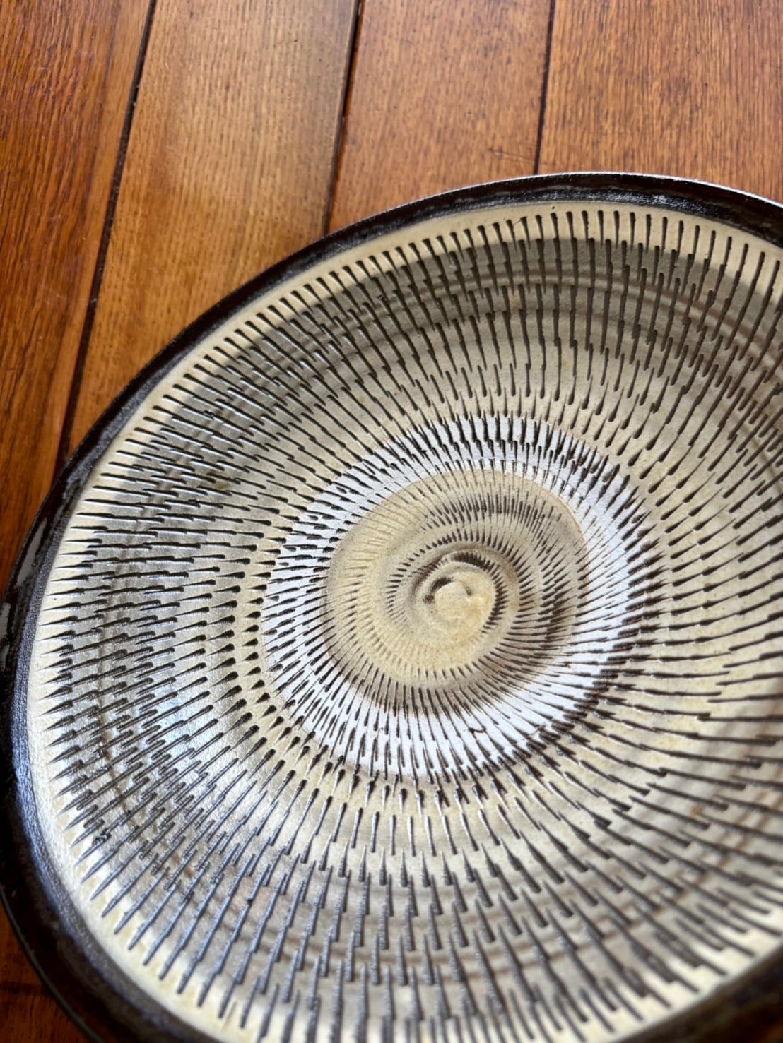 飛び鉋模様が美しい小鹿田焼の手作りディナー皿です。