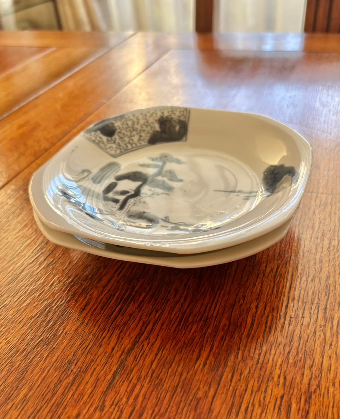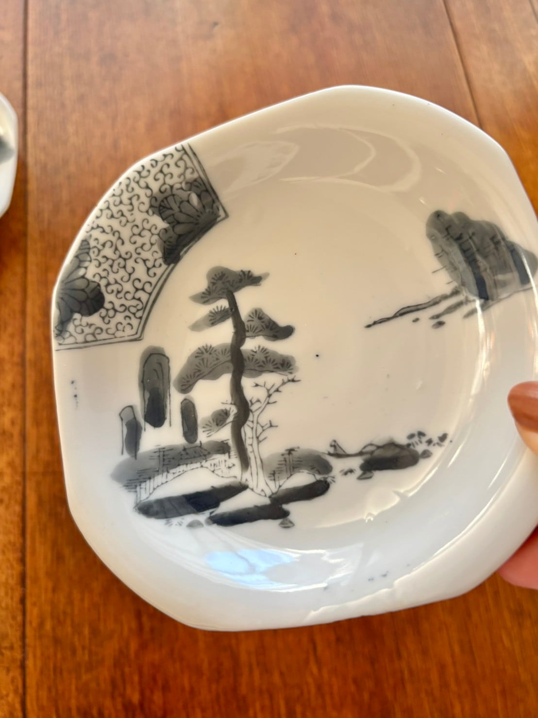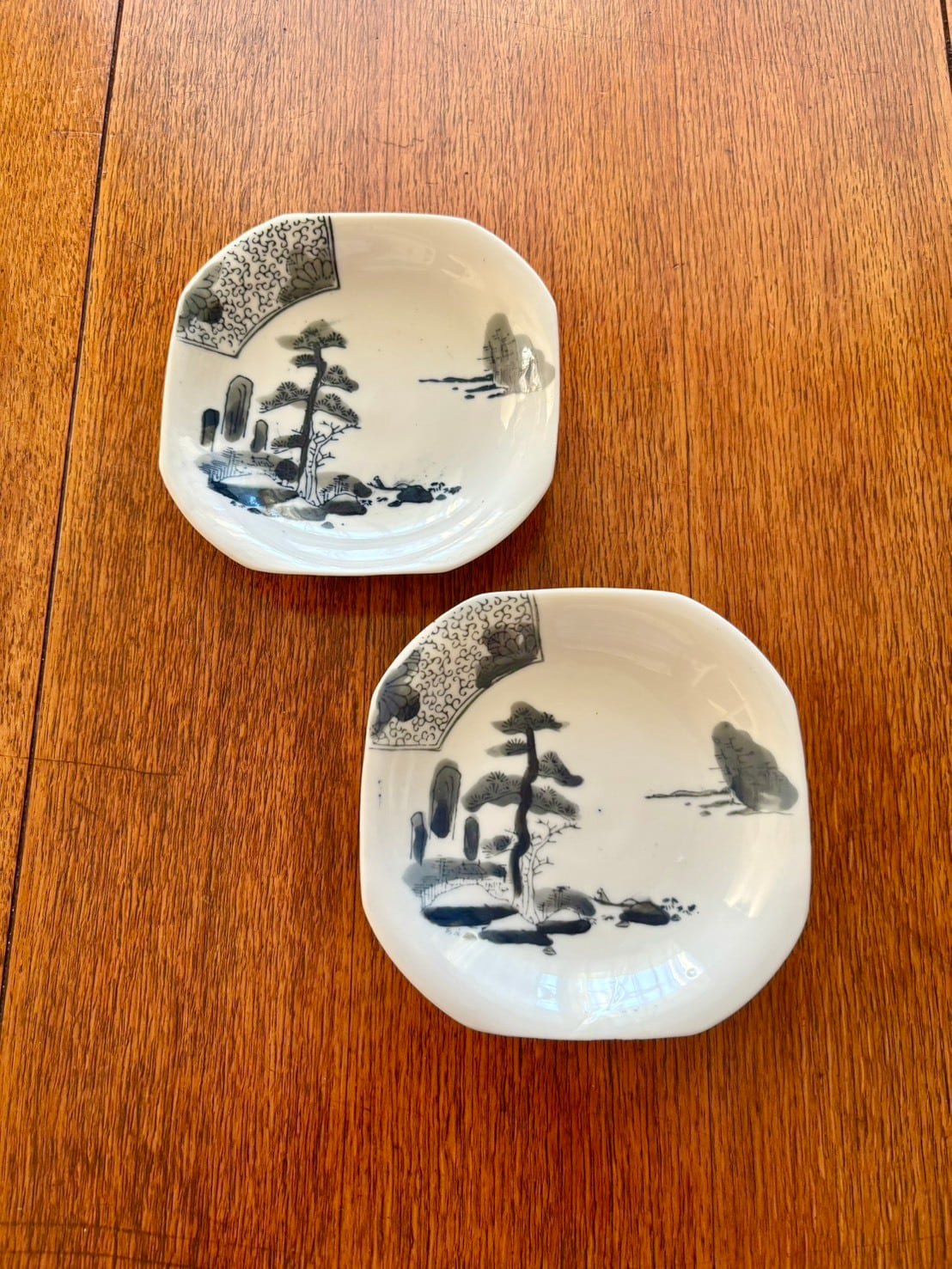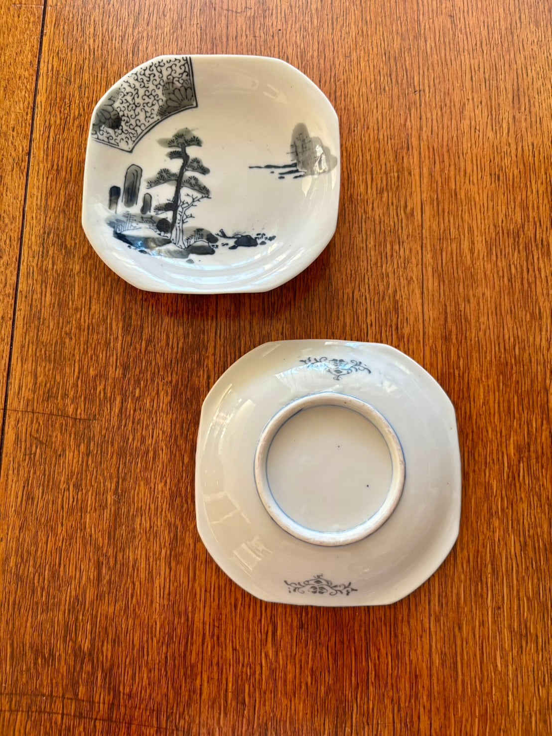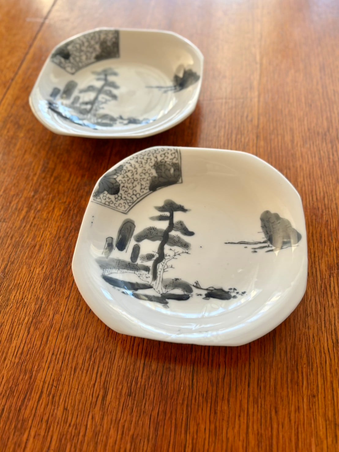 角皿 中皿 取り皿 八角皿 山水文 黒染付 松 唐草 ヴィンテージ|Square Plate, Medium Plate, Side Plate, Octagonal Plate, Landscape Design, Black and White Porcelain, Pine, Arabesque, Vintage