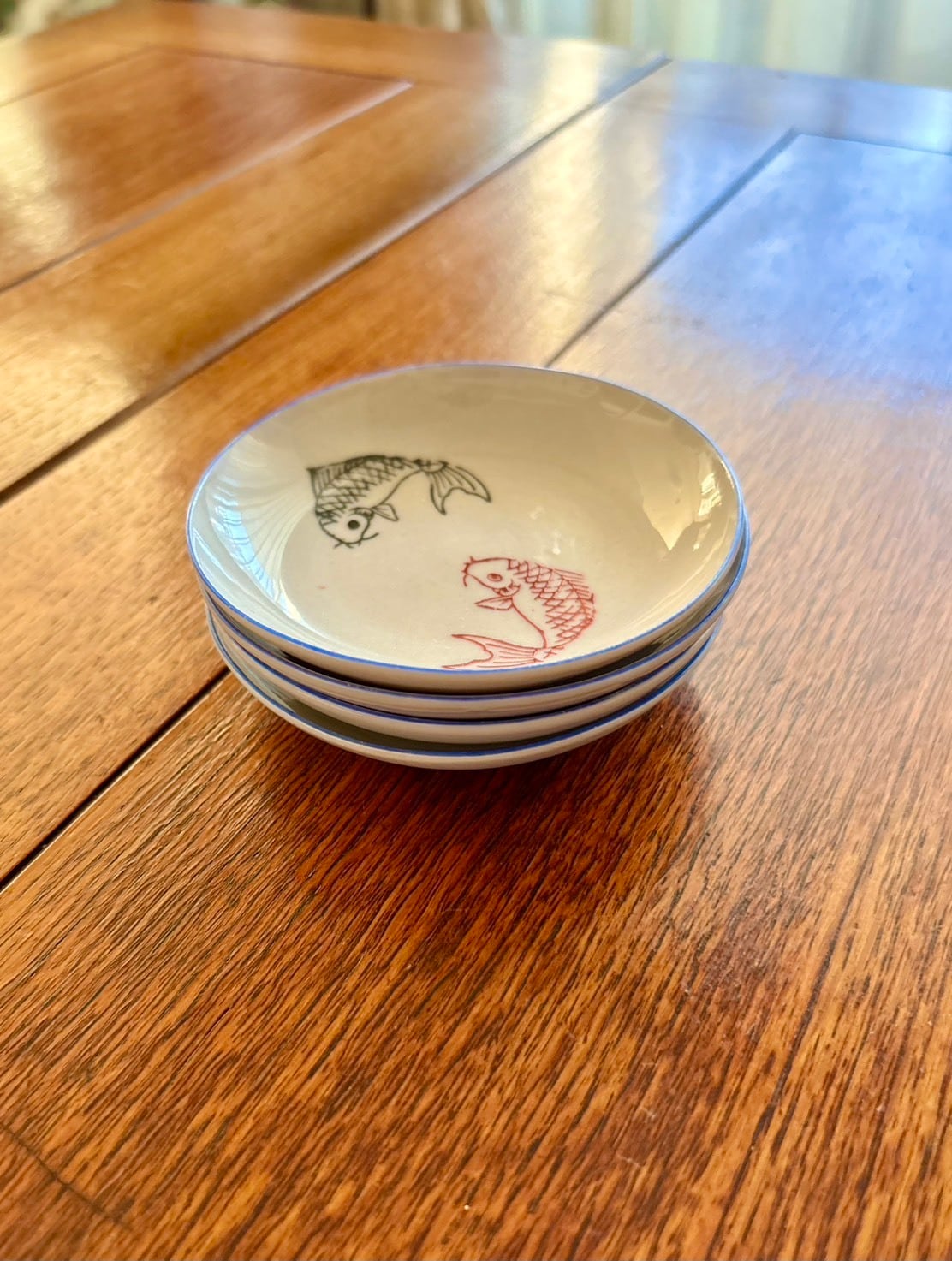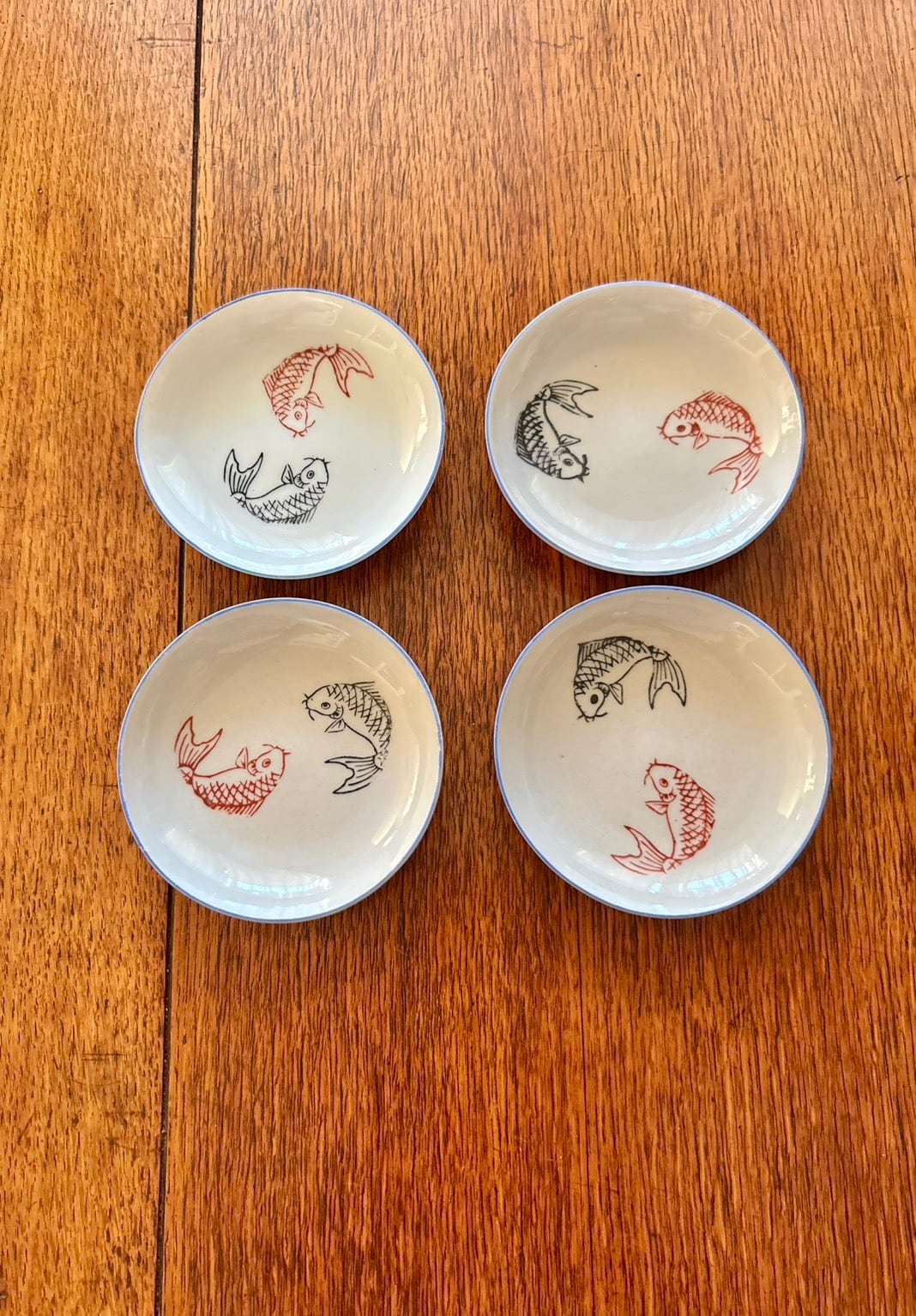 赤と黒の鯉が描かれた可愛らしい小皿。