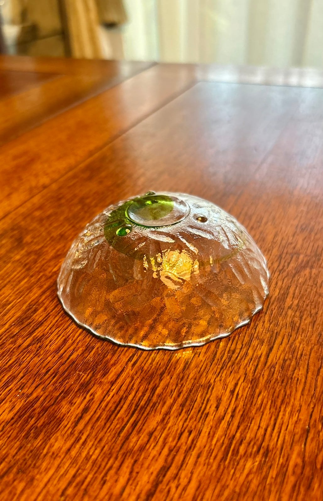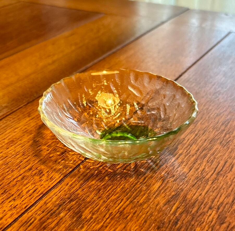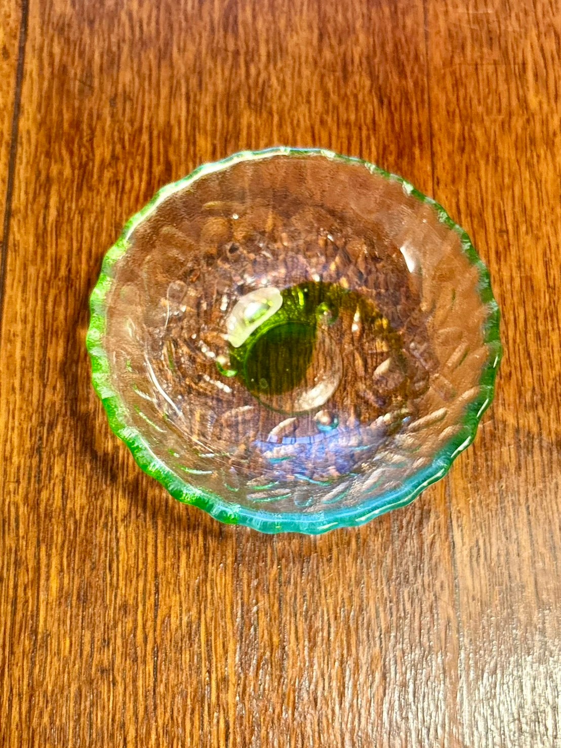 グリーンの印象的な差し色が入ったガラスの小皿。