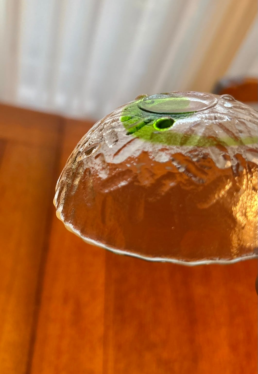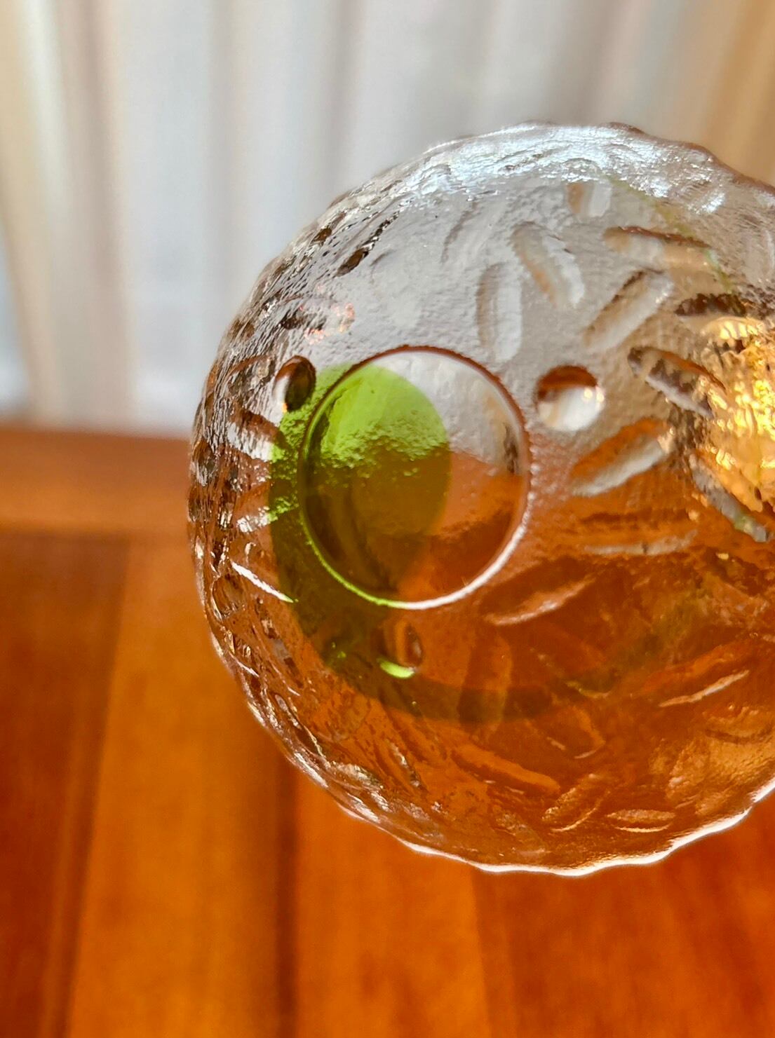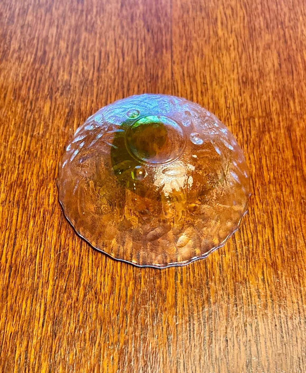 グリーンの印象的な差し色が入ったガラスの小皿。