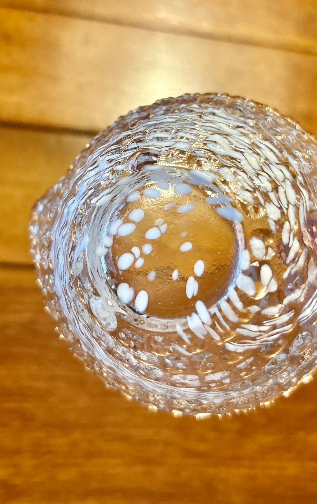ホワイトの印象的な差し色が入ったガラスの小皿。