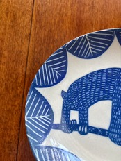 なまけもの katakata+classiky 平皿 中皿 染付 印判 型染め 七寸皿|Sloth katakata + classicy Flat Plate, Medium-size, Blue and White Porcelain, Stamped dyeing, 7-inch Plate