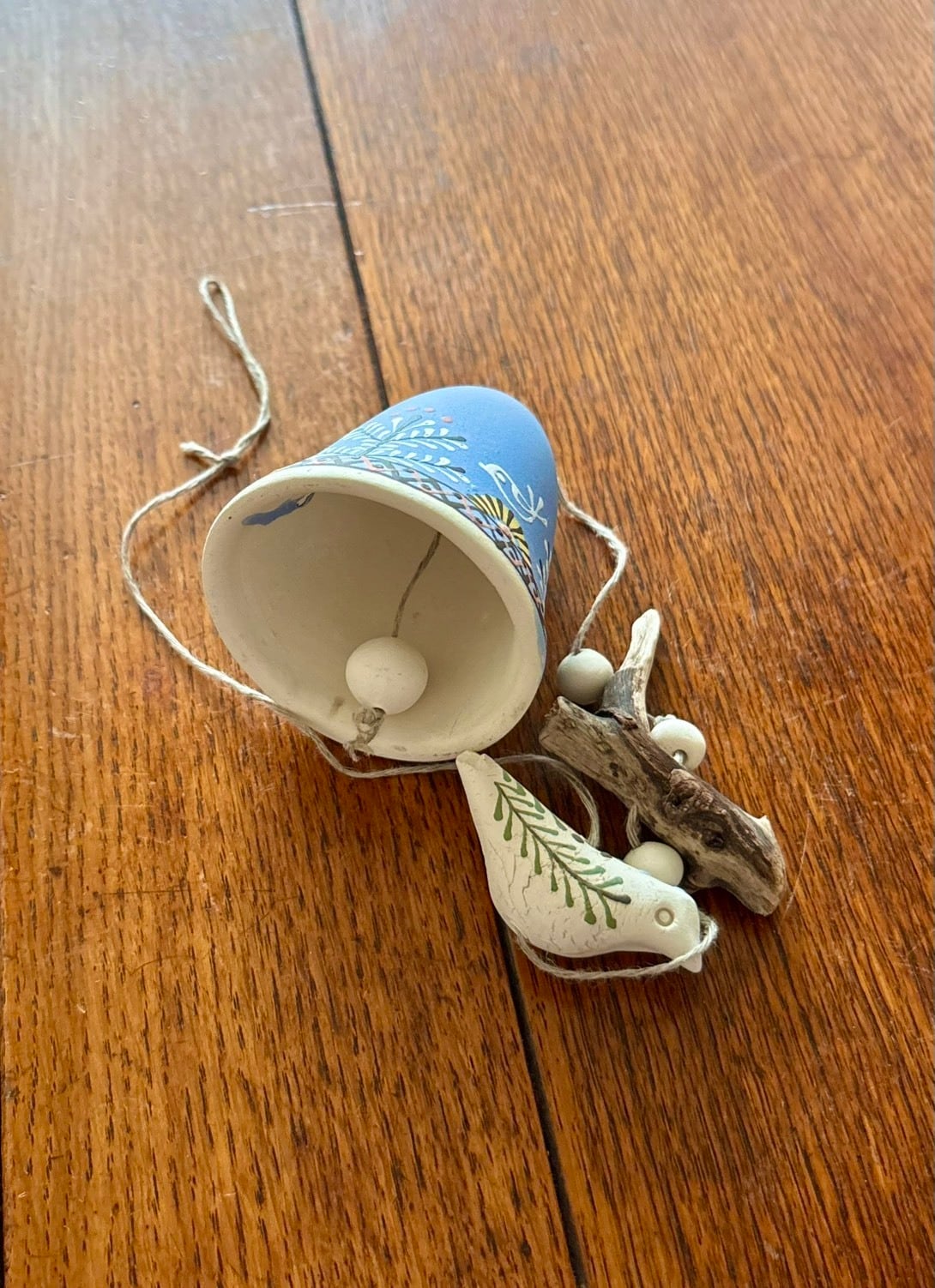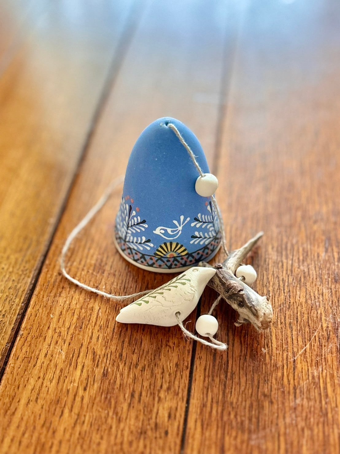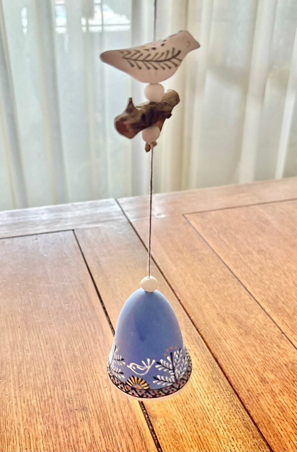 北欧 リトアニア ベル 風鈴 インテリア 雑貨 陶器 小鳥 絵付け ブルー|Nordic Lithuanian Bell Wind Chime Interior Decor Ceramic Bird Painting Blue
