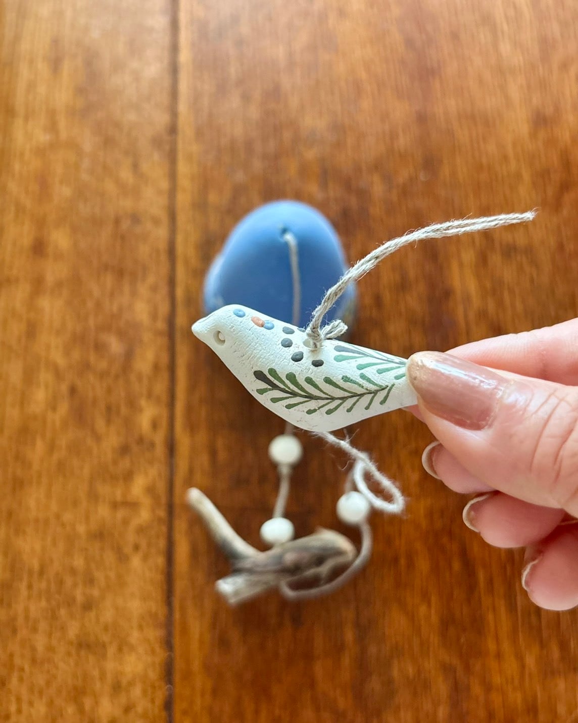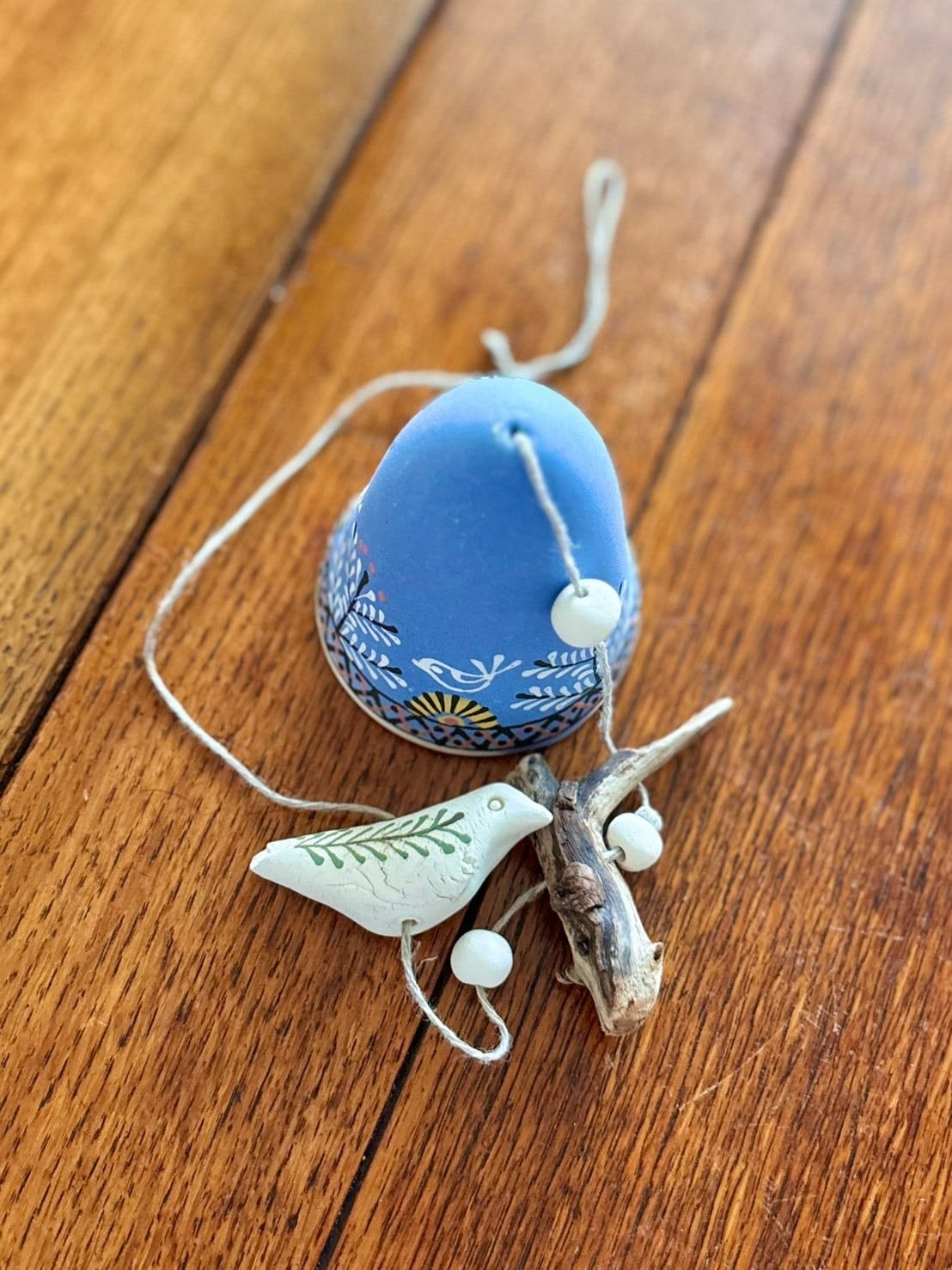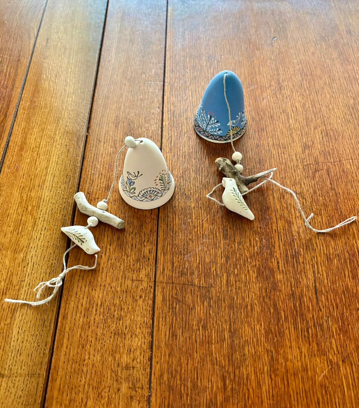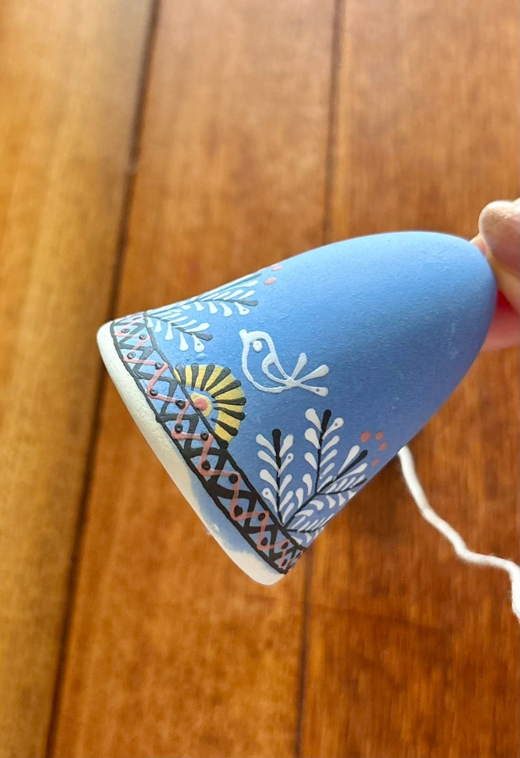 北欧 リトアニア ベル 風鈴 インテリア 雑貨 陶器 小鳥 絵付け ブルー|Nordic Lithuanian Bell Wind Chime Interior Decor Ceramic Bird Painting Blue