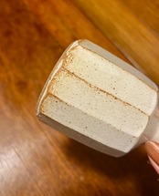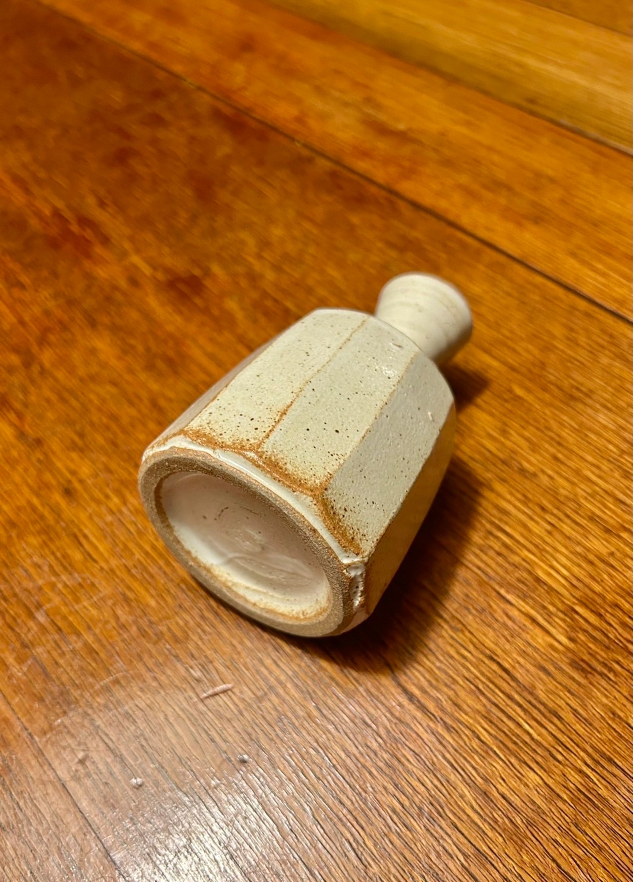 This is a work by Taro Kawamoto, a ceramic artist from Saga Prefecture. It is a warm piece made with reddish clay and white glaze, with the color of the clay showing through in places. It would be great for arranging flowers or as an interior decoration.